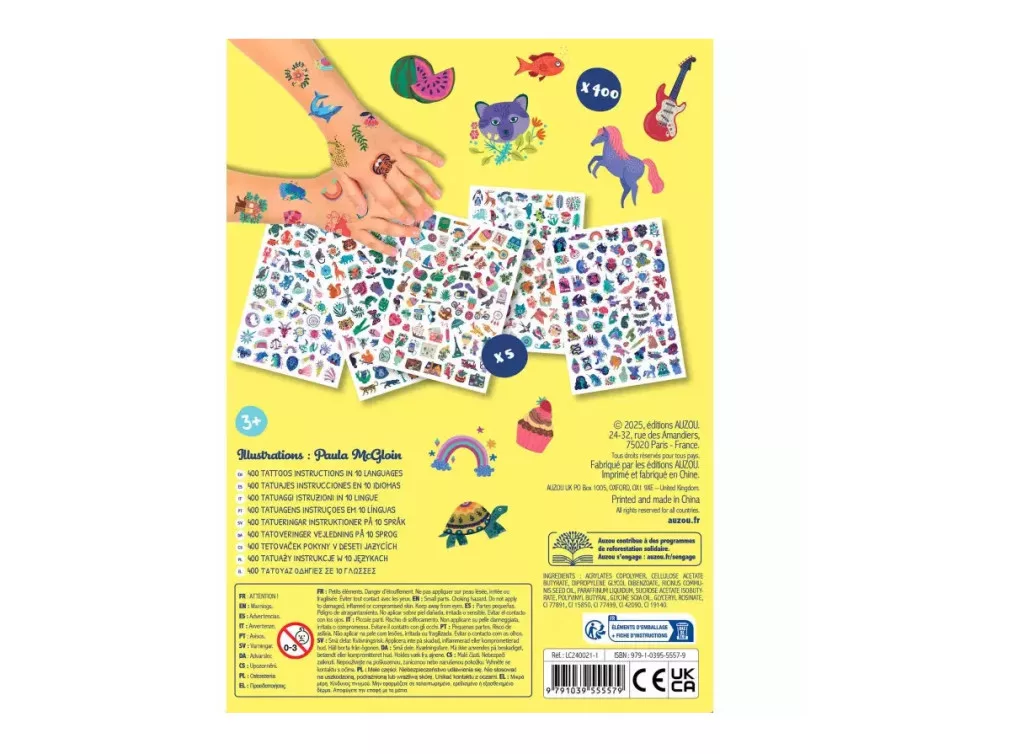 A csomagban összesen 400, lemosható tetoválást található, amelyekkel a gyerekek bátran kifejezhetik egyéni stílusukat, vagy egyszerűen csak élvezhetik a változatos, látványos mintákat.