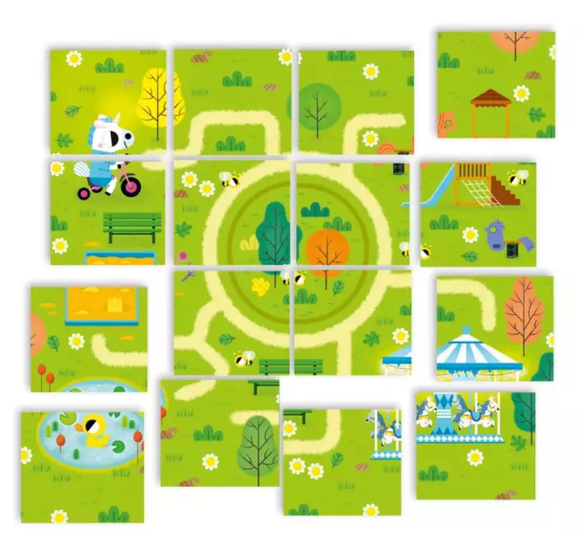 A feladatkártyák hátoldalán összecsukható és összekapcsolható részek találhatók, így a kártyákból egy óriási "keresd és megtalálod" játékot alkothatsz, ahol a gyerekeknek meg kell találniuk a különböző tárgyakat vagy elrejtett elemeket.