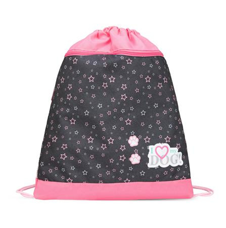 A kutyus dizájnú tornazsák, kiválóan passzol a szetthez tartozó iskolatáskához és tolltartóhoz.