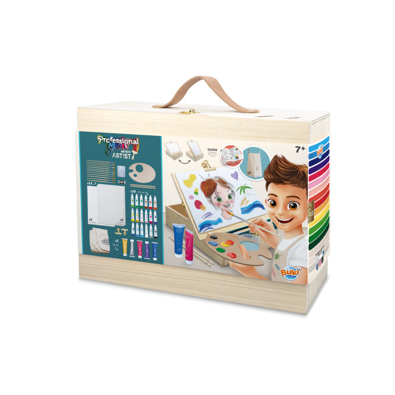 A Buki Professzionális Stúdió, Festő készlet egy csodás, komplett művészeti készlet, amely otthoni műhelynek is beillik. Festészet, kreativitás, színkeverés és csillogás – mindez egy elegáns és praktikus művészdobozban, amit bárhová magaddal vihetsz.