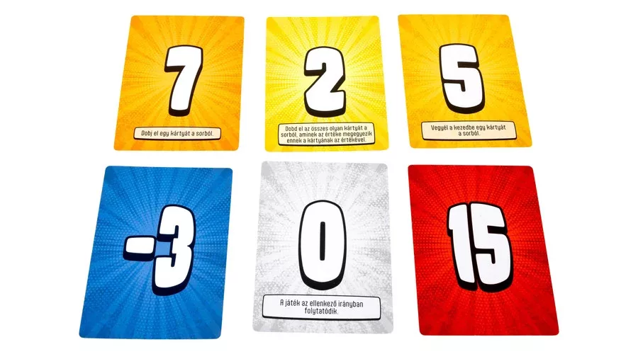 Ami igazán megfűszerezi a partit, azok a rafinált akciókártyák. Megfordítanád a játék irányát, hogy a melletted ülő izzadjon? Vagy eltávolítanál egy veszélyes lapot a sorból az utolsó pillanatban? Itt megteheted! Csak 3 lap lehet a kezedben, így folyamatosan sakkoznod kell: szabadulj meg a nagy értékektől, vagy tarts meg egy mentőövet a kritikus helyzetekre?