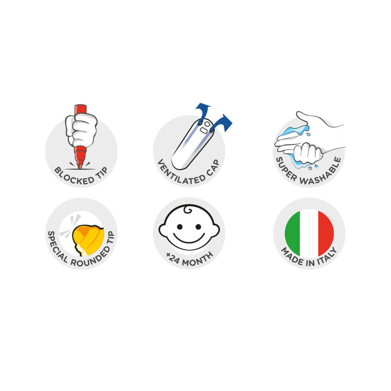 • 8 db 2+ extra mosható filctollat ​​tartalmaz. Könnyen mosható,vízbázisú tinta. Kerek hegy, 3 mm széles, nyomásálló.