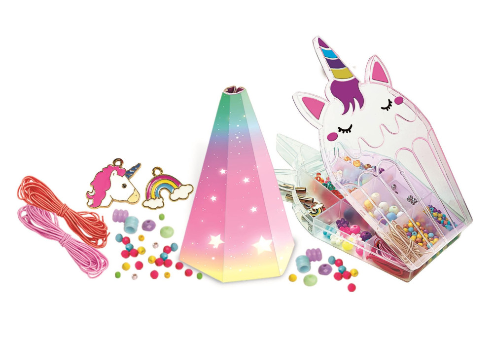 Engedd szabadjára gyermeked fantáziáját a Crazy Chic unikornisos kreatív készlettel, amellyel csodálatos karkötőket készíthet egyszarvú és szivárvány motívumokkal! A készlet tele van színes gyöngyökkel, csillogó függődíszekkel, mini pomponokkal és rugalmas gumiszalagokkal, minden, ami a trendi kiegészítők elkészítéséhez szükséges.