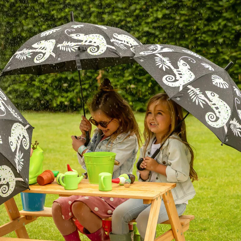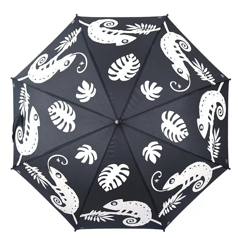 Akkor ezt a színváltós kaméleon mintával rendelkező darabot neked ajánljuk! Az esernyőt díszítő kaméleonok víz hatásására megváltoztatják színüket. Kisebb méretéből adódóan könnyen használhatja gyermeked.