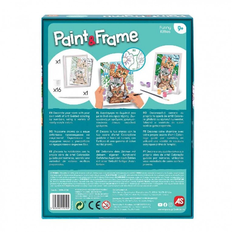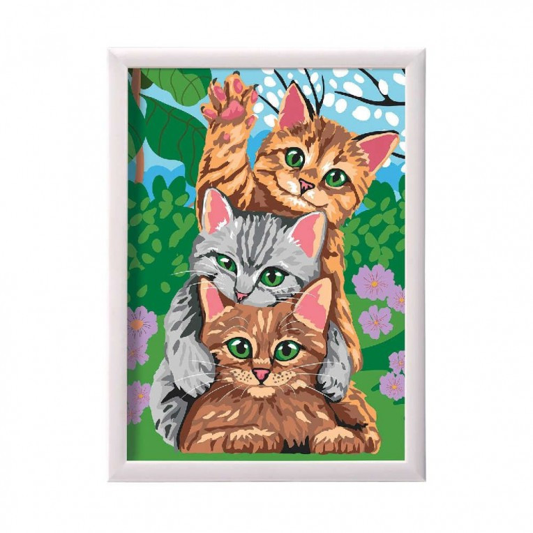 Lepd meg a gyerkőcöket ezzel a cuki cicás számfestővel, amivel garantáltan órákra lekötheted őket! A szett egy előrajzolt cicás mintát, 16 db élénk színű akrilfestéket, egy festékpaletátt, melybe bele tudod helyezni a kis festékes tégelyeket illetve egy képes útmutatót is tartalmaz, így minden adott a kreatív festéshez. Az elkészült művet pedig a szetthez tartozó képkeretben ki is tehetjük a szobánkban dísznek.