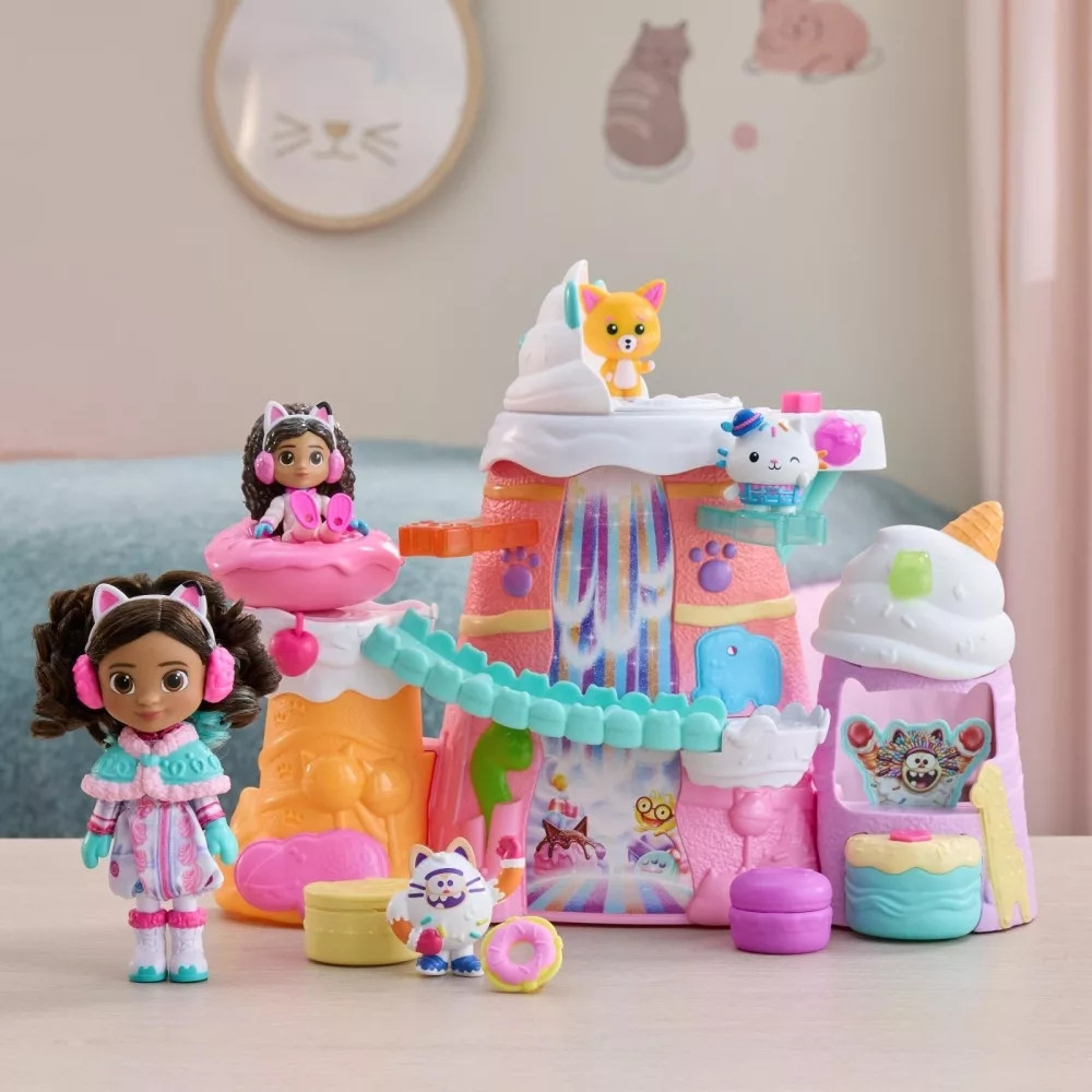 A készletben megtalálható Gabi és barátja Chumsley, a vörös cica. Fedezzétek fel velük Édesség hegy vidékét, nyomjátok meg együtt a Mancsütés varázsgombokat.