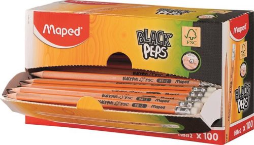 100db-os Grafitceruza display, HB, FSC 100%, háromszögletű, MAPED "Black'Peps"