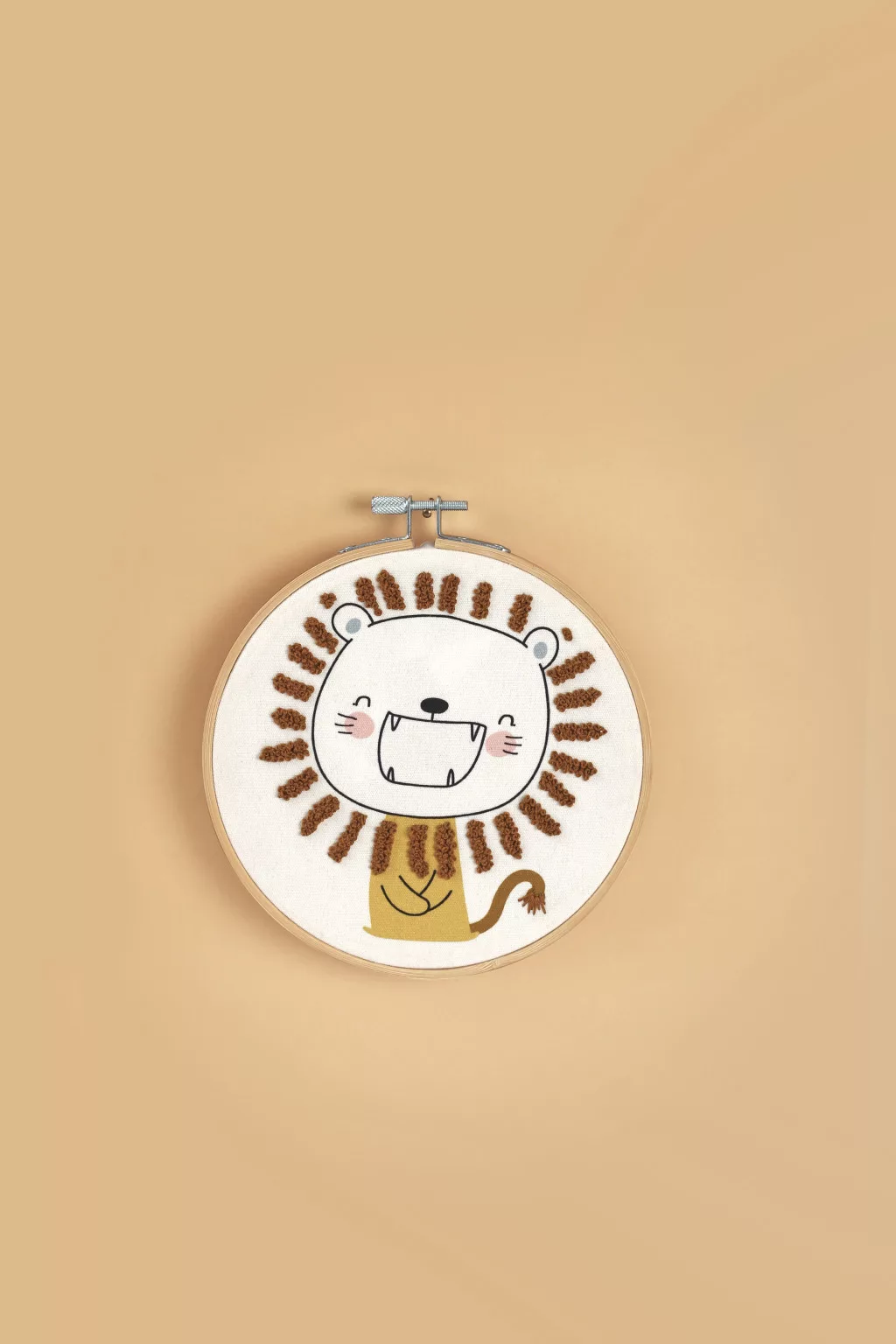 Ez a pasztell színű hímzőkészlet egy kedves oroszlán mintával készült, amelyből könnyen elkészíthető egy bájos falidísz. A vászonra nyomtatott minta segít abban, hogy a kezdők is magabiztosan haladjanak a hímzéssel. Az egyszerű öltésekkel a kép szép, domború hatást kap. A kész alkotás jól mutat gyerekszobában vagy ajándékként is.