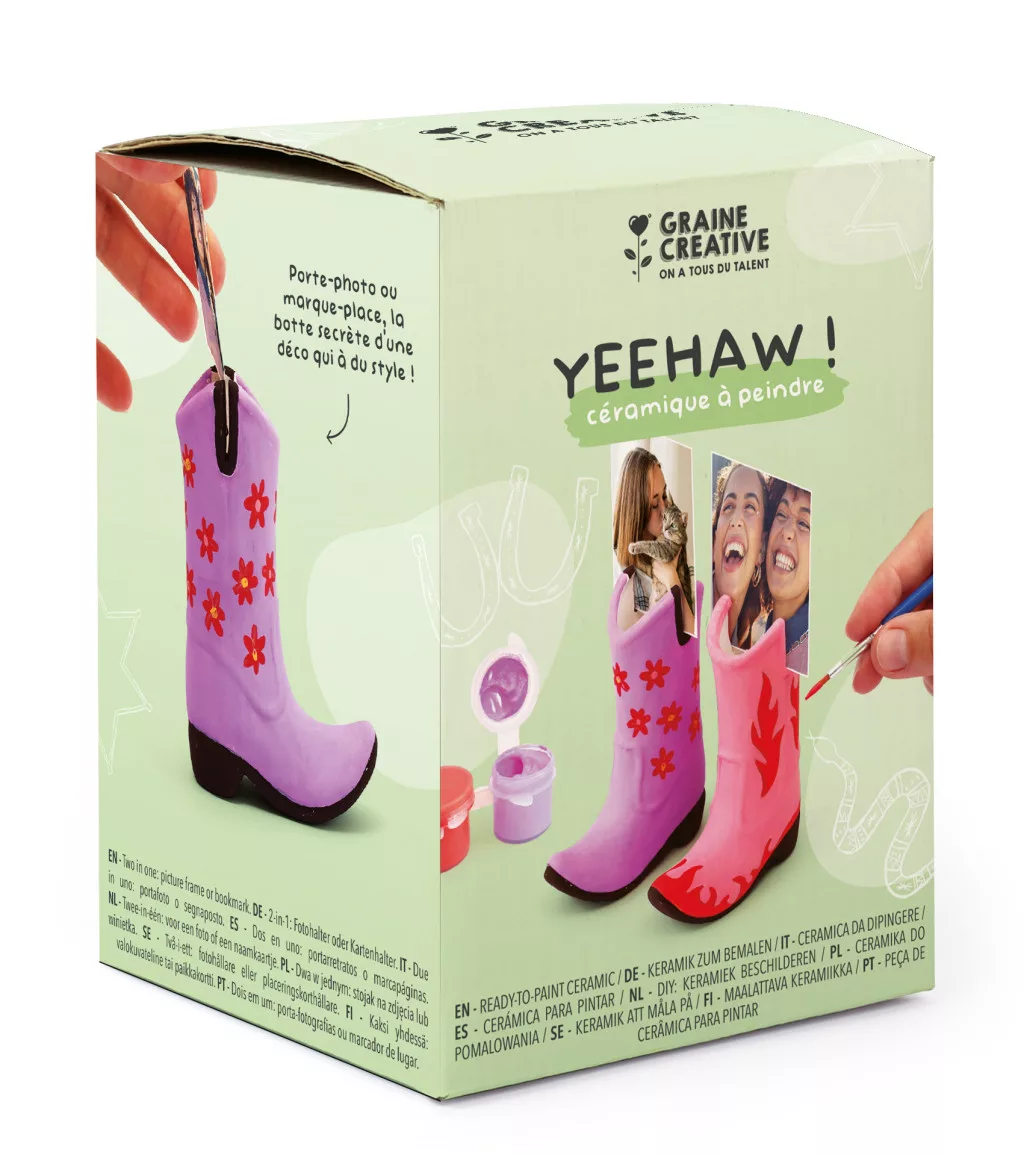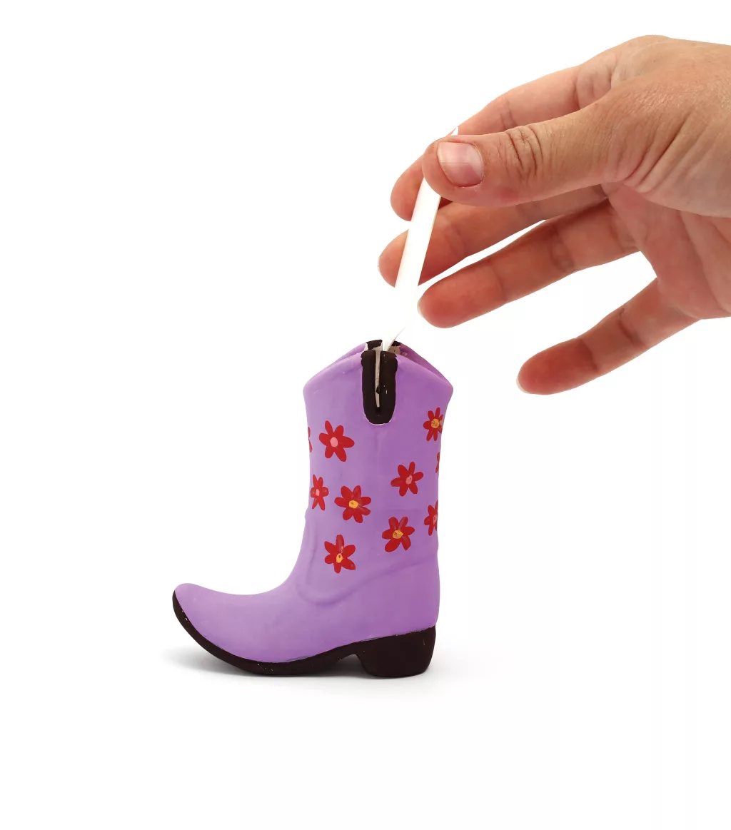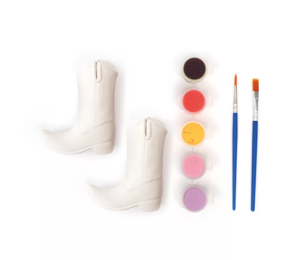 Ezzel a kerámiafestő készlettel egyedi cowboy csizma figura készíthető. A festés kreatív és kikapcsoló időtöltést nyújt, miközben fejleszti a kézügyességet és a fantáziát. Az elkészült alkotás dekorációként vagy személyes ajándékként is megállja a helyét.