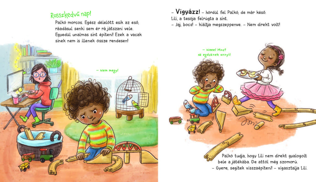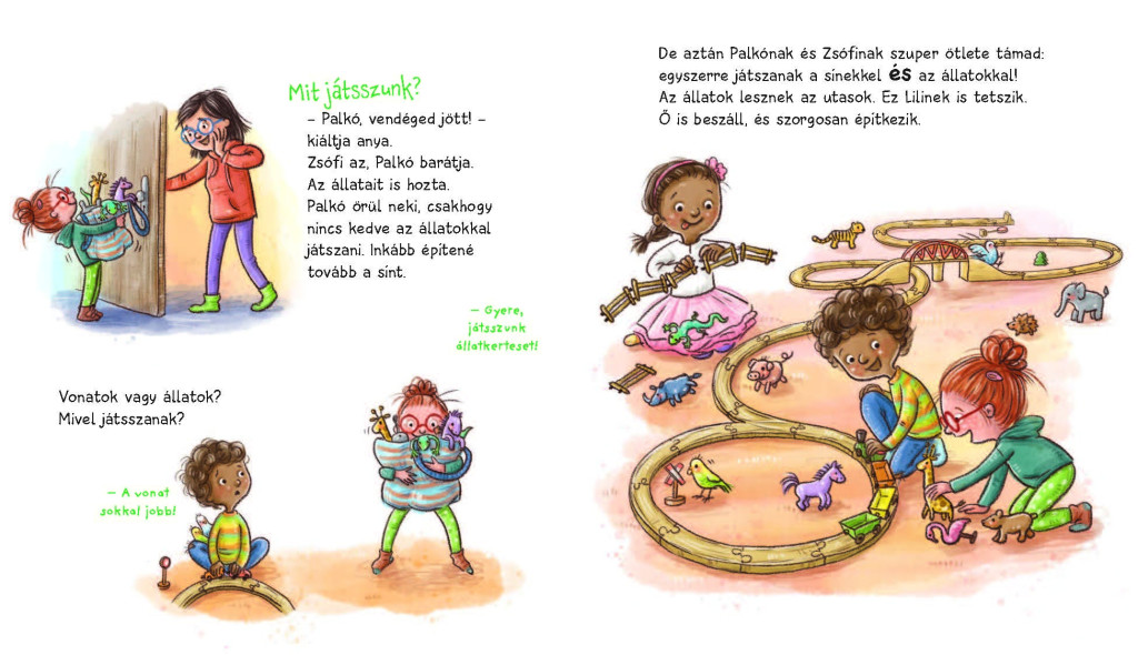 Mennyivel jobb együtt játszani, mint duzzogni! A vicces illusztrációk és a kinyitogatható ablakok segítenek megérteni, hogyan oldódnak meg a konfliktusok.
