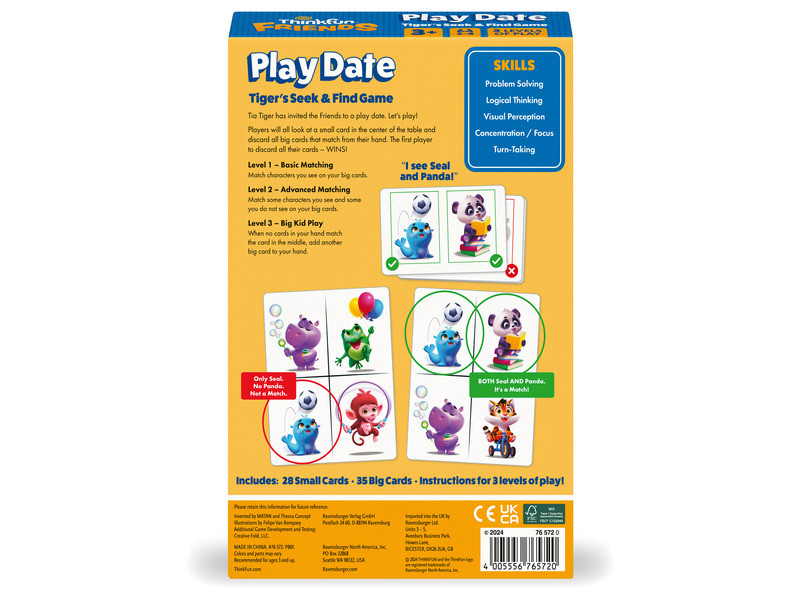 A játékban a gyerekeknek vidám állatfigurákat kell megkeresniük a képkártyákon. Így játszva fejlődik a megfigyelőképességük, memóriájuk és a koncentrációjuk.