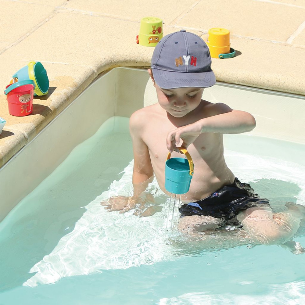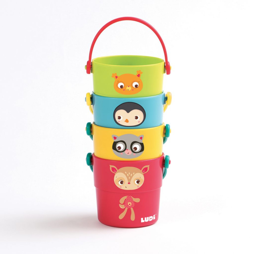 A kis fogantyúknak köszönhetően a legapróbb kezek is könnyedén meg tudják fogni a vödröket.Játék közben megismerhetik a színeket, összehasonlíthatják a vödröket, és saját tempójukban fedezik fel a különböző formákat. Így alakul ki a tárgyak egymásra helyezésének élménye, ami segíti a térbeli érzékelés és a memória fejlődését.