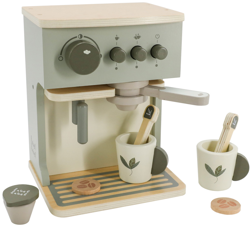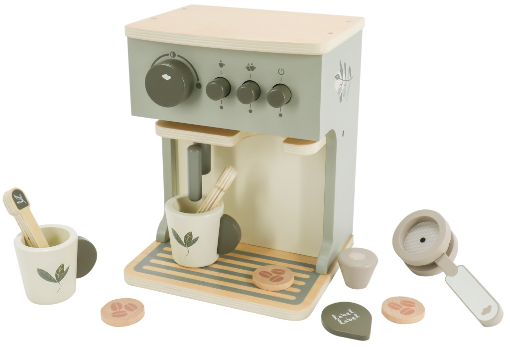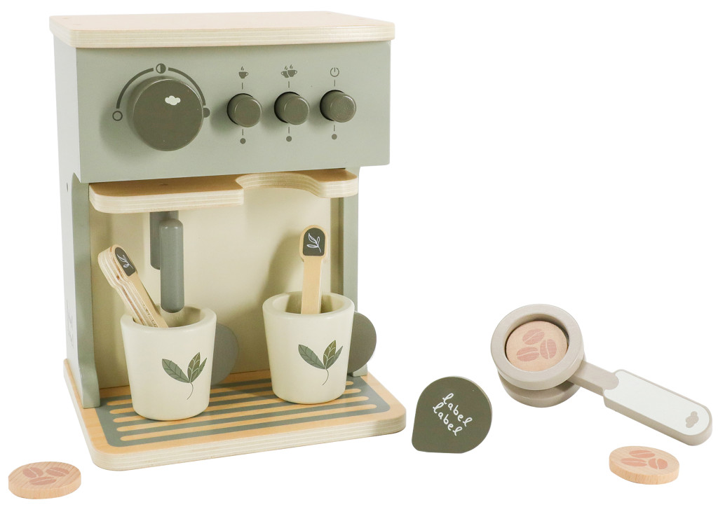 Label-Label kávéfőző szett kiegészítőkkel, olíva - Fa játék szerepjáték