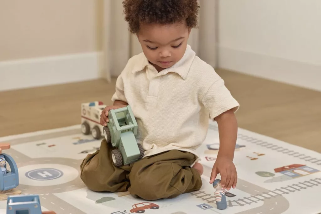 Fejlesszünk minden alkalmat megragadva: miközben a kicsi a traktort tologatja, játékos formában fejlődik a finommotorikája és a szem-kéz koordinációja.