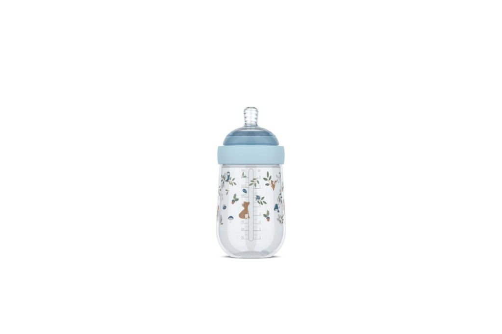 A Little Dutch forest friends mintás cumisüveg kényelmet nyújt a babának és nyugalmat a szülőknek minden etetés során. A 165 ml-es Mepal Mio cumisüveg ergonomikus kialakításának köszönhetően könnyen kézben tartható, a természetes formájú, orvosi szilikonból készült cumifej pedig gyengéden illeszkedik a baba szájához.