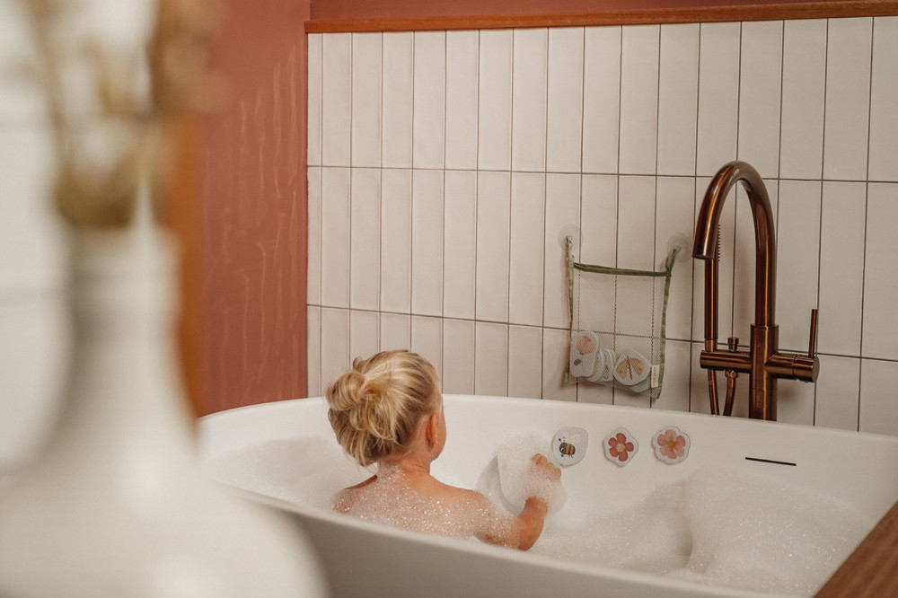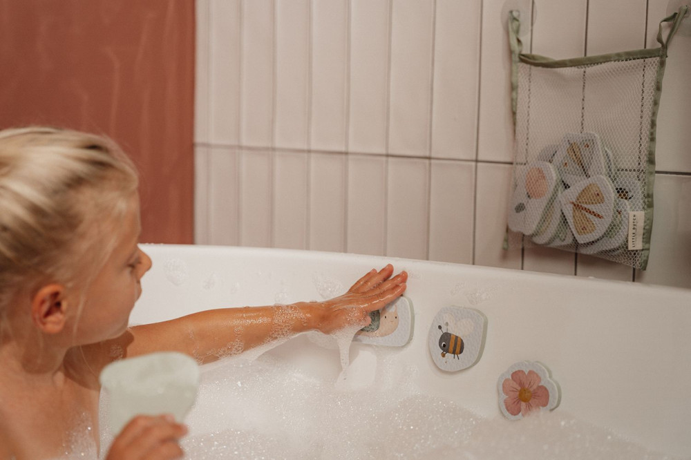 Legyen öröm a fürdés ezzel a virágokkal és pillangókkal díszített habszivacs fürdőjátékkal! A nedves tapikat a gyerekek kedvükre tapaszthatják fel a fürdőkádra, vagy a csempére. A szülők is nyugodtak lehetnek, hiszen a feltapasztásuk nem hagy semmilyen nyomot. A fürdővízben is jó móka vele a játék, hiszen a vízben nem merül el. A játék végeztével csak vissza kell helyezni a praktikus tárolóba, ami a csempére tapasztható, így a tapik könnyen kiszáríthatók, és a kicsepegő víz a kádba jut.