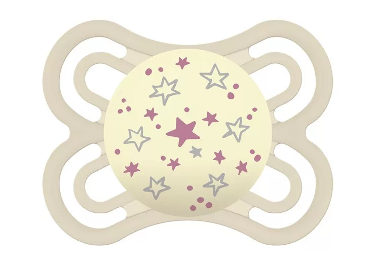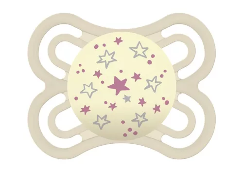 MAM Perfect éjszakai szilikon cumi (2-6 hónap) - Fehér - Rózsaszín csillagok