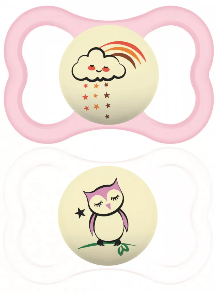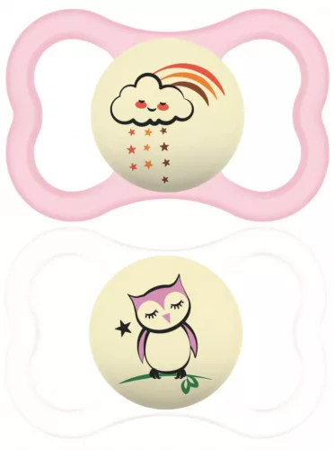 MAM Supreme Trends nyugtató éjszakai cumi dupla - 6h+ - Rózsaszín - felhőcske és bagoly