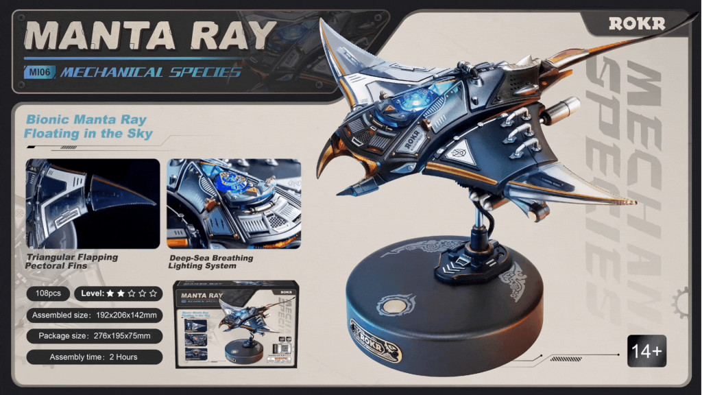 Az ördögrája víz alatti manőverezése az egyik leglenyűgözőbb inspiráció a technológiai alkotáshoz és innovációhoz. A tudósok régóta próbálják utánozni az óriási rája hatalmas mellúszóinak kecses, hullámzó mozgását, hogy hatékonyabb víz alatti közlekedést érjenek el. Számos projekt — köztük személyzettel működő és autonóm járművek — alkalmaz rugalmas uszonykialakítást a teher­szállításhoz és a tenger felfedezéséhez, mindezt minimalizált zavaró hatással az élővilágra. Akárcsak az ördögrája és az általa ihletett csúcstechnológia, ez a 3D puzzle is a kecsesség, a hatékonyság és az intelligens tervezés harmóniáját testesíti meg.