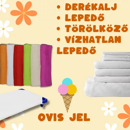 A csomag tartalma: lepedő, vízhatlan lepedő, derékalj, ovis jelek