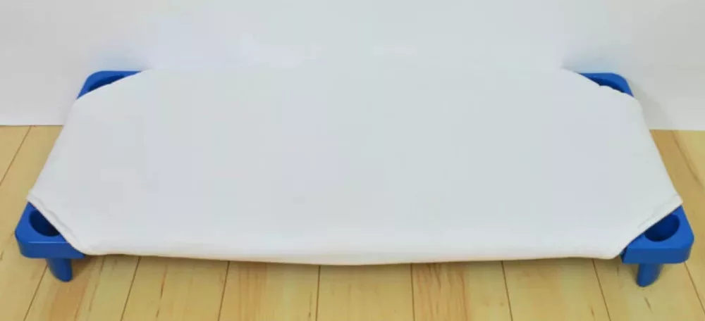 Vízhatlan lepedő (Mérete: 130x56 cm): 100%-os pamutból készült, az ágy négy sarkán, átlósan gumiszalaggal rögzíthető az óvodai fektetőre, megakadályozva ezáltal az elmozdulást. Praktikus, biztonságos és kényelmes vízálló védelem kompromisszumok nélkül.