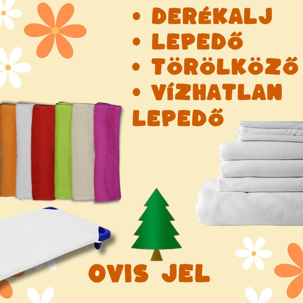 A csomag tartalma: lepedő, vízhatlan lepedő, derékalj, ovis jelek