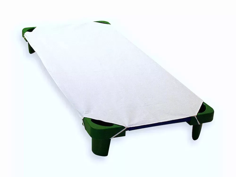 Vízhatlan lepedő (Mérete: 130x56 cm): 100%-os pamutból készült, az ágy négy sarkán, átlósan gumiszalaggal rögzíthető az óvodai fektetőre, megakadályozva ezáltal az elmozdulást. Praktikus, biztonságos és kényelmes vízálló védelem kompromisszumok nélkül.