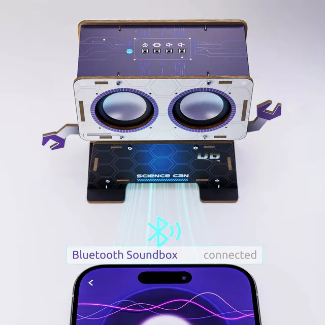 Ez a vagány, robot alakú hangszóró arra vár, hogy darabokból összeállítsd. Miközben szereled, feltárulnak előtted az elektronika alapjai, és megérted, hogyan működik a technika a burkolat alatt. A szerelés folyamata fejleszti a logikai gondolkodást, a türelmet és a finommotorikát, a végeredmény pedig egy teljesen működőképes, Bluetooth-szal csatlakoztatható robotbarát, aki készen áll, hogy lejátszani a kedvenc listáidat!