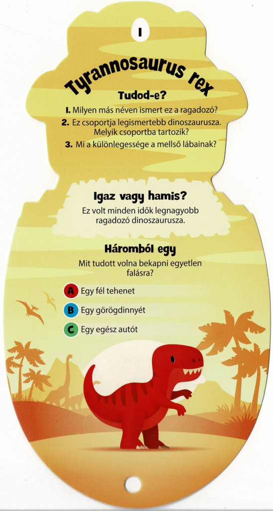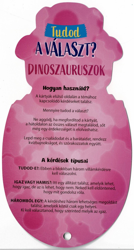 A dinoszauruszok világa a gyerekek képzeletét minden korban megmozgatja. Ezek az ősi, titokzatos lények nemcsak lenyűgöző méreteik és formáik miatt érdekesek, hanem azért is, mert a történelmük a Föld több százmillió éves múltját tárja fel előttünk. A „Tudod a választ? – Dinoszauruszok” kártyacsomag egy szórakoztató, ismeretterjesztő játék, amely 46 dinoszaurusz és őslény világát mutatja be kérdéseken, feladványokon és meglepő tényeken keresztül.