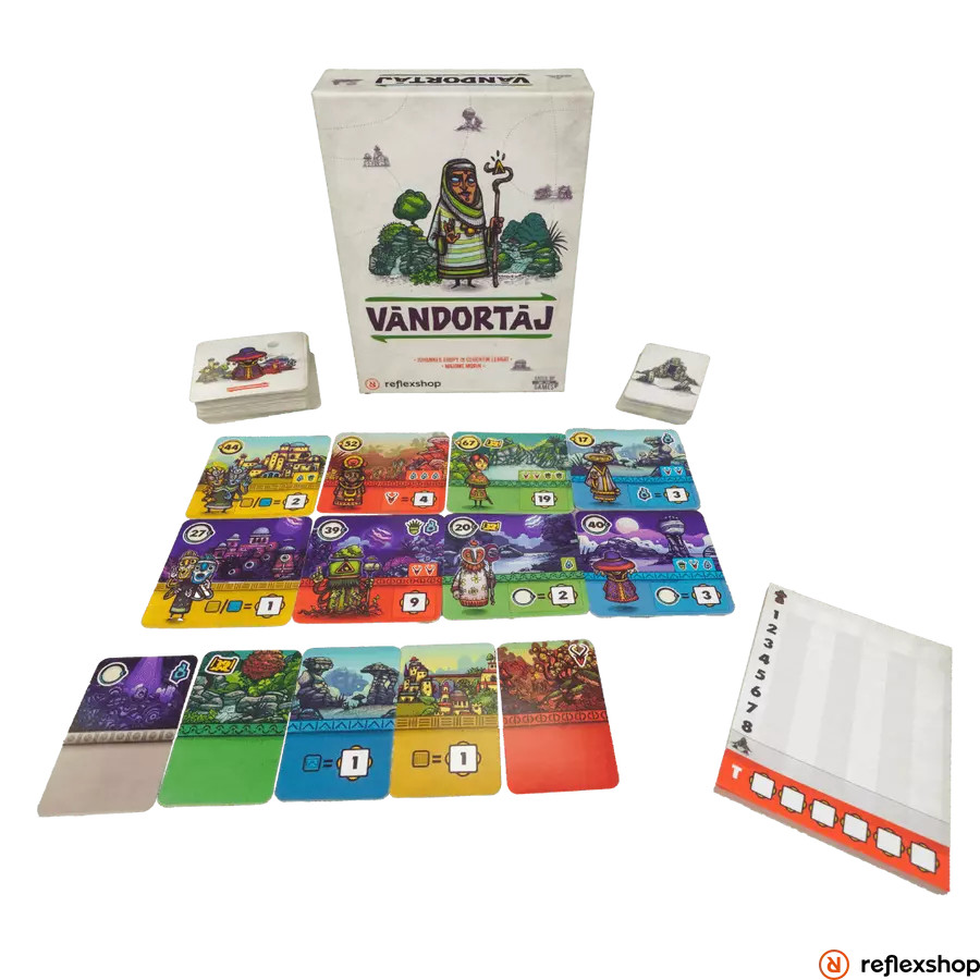 A Vándortáj egy olyan társas, melyben előre kell gondolkodnod, hiszen a játék végén a kártyákon szereplő feltételeknek nem a megszerzett sorrendben, hanem visszafele kell teljesülniük. Gyönyörű kivitelezés, magyar játékszabály és egy folyton változó társas vár, melyet nem tudsz megunni.
