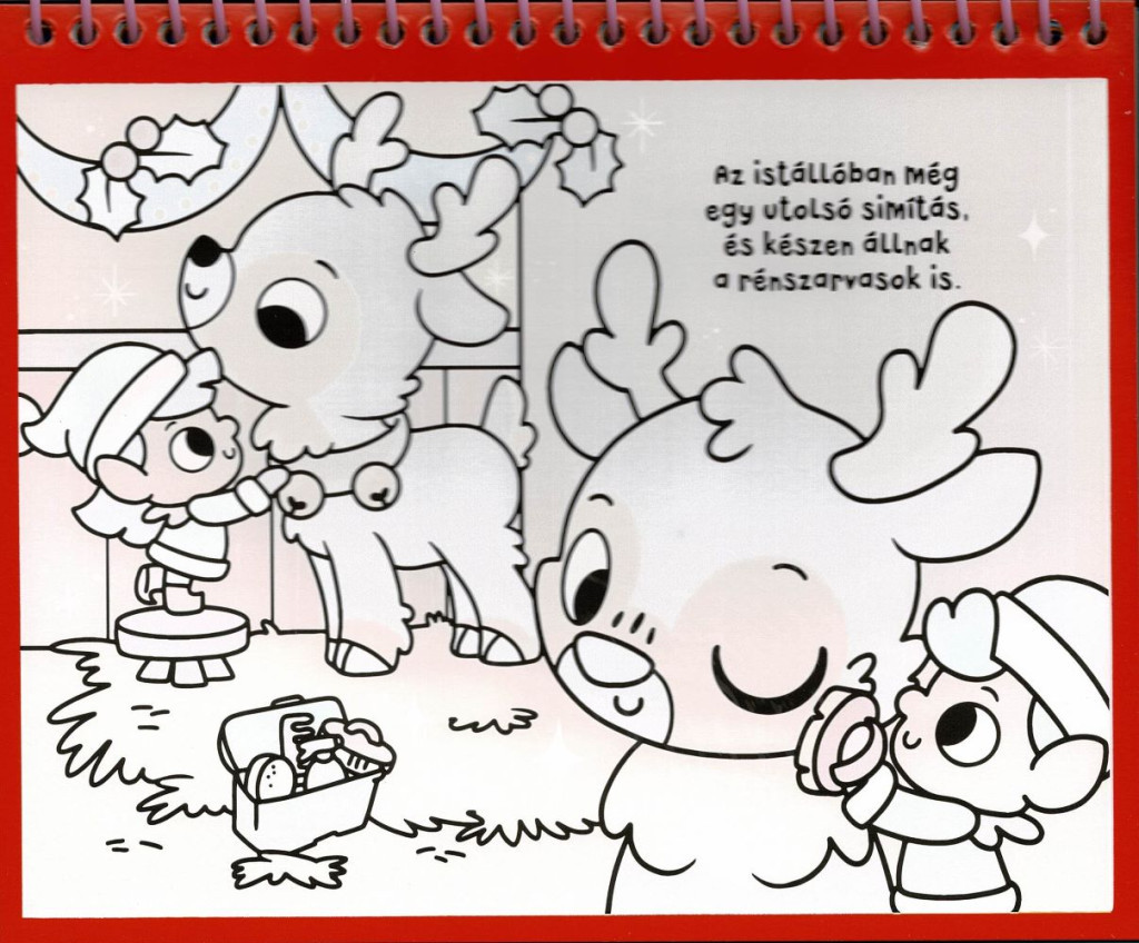 A Varázsolj színeket! - Karácsony egy különleges foglalkoztatófüzet, amely a karácsony mesés világába kalauzolja el a gyerekeket. Ebben a varázslatos kiadványban nemcsak egy bájos történettel találkozhatnak, hanem egy különleges eszközzel is: a vízzel tölthető varázstollal. Ez a különleges toll lehetővé teszi, hogy a képek színei életre keljenek – mindezt úgy, hogy a gyerekeknek csak vizet kell hozzá használniuk.