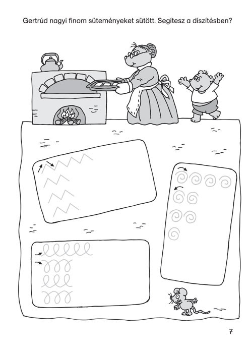 Húzd meg a vízesés vonalát, rajzold meg az esőcseppeket, szeleteld fel a megrajzolt tortát! Vidám és érdekes feladatok, körök, egyenesek, spirálvonalak és cikcakkok. A nagycsoportos óvodások játszva szerzik meg az íráshoz szükséges rutint. A kisiskolások már a betűk és számok vonalait húzhatják.