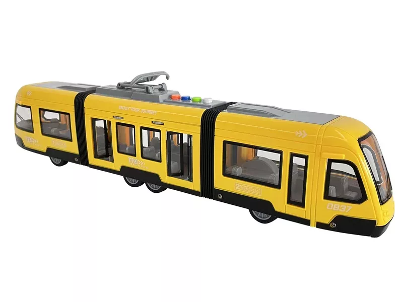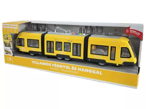 Szállítsd utasaidat időben a célállomásra ezzel a valósághű villamossal! Az aprólékos kidolgozású modell minden ajtaja nyitható, így könnyedén felveheted az utasokat. A visszahúzós mechanizmusnak köszönhetően könnyedén mozgásba lendíthető, a fény- és hanghatások pedig még élethűbbé teszik a játékélményt. A 45 cm-es villamos tökéletes a közlekedés kedvelőinek. Készen állsz egy igazi városi kalandra?