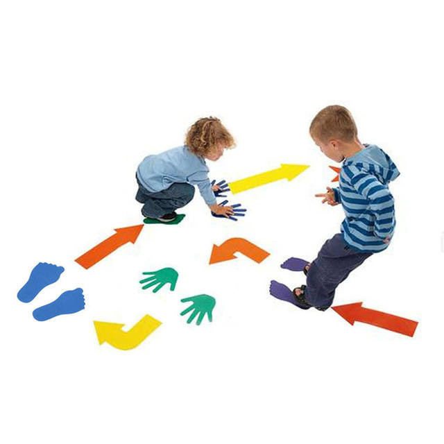 Kéz alakú padlójelölő szett. Fejleszti a gyermekek kombinációs- és mozgáskészségét. Sokféleképpen tudnak vele játszani is, csak a kreativitásukra van bízva. Különböző pályákat lehet tudunk építeni belőle. Csúszásmentes gumi anyagból készült.