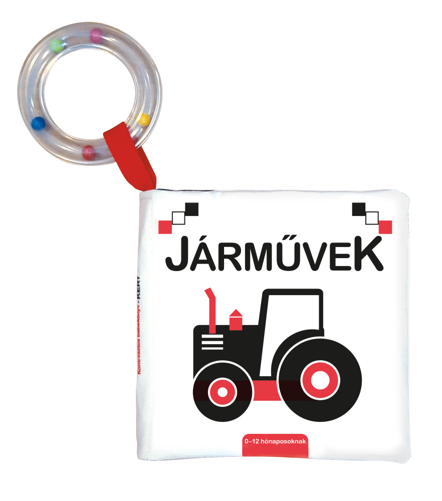 A kontrasztos babakönyv kollekció ezen darabja a járművekről szól.