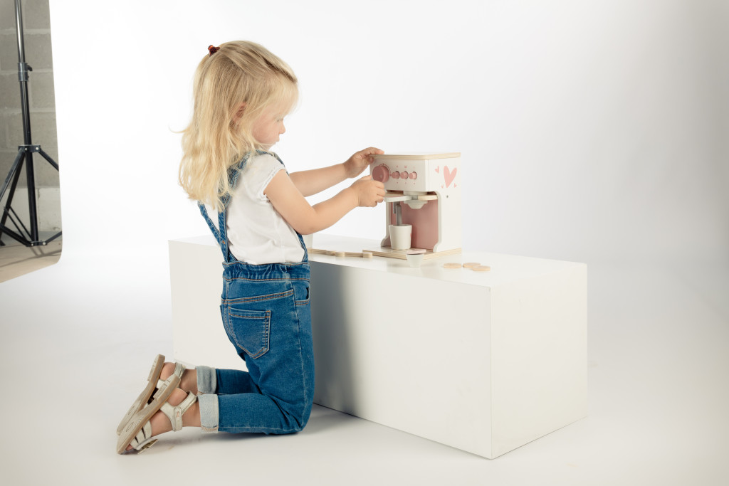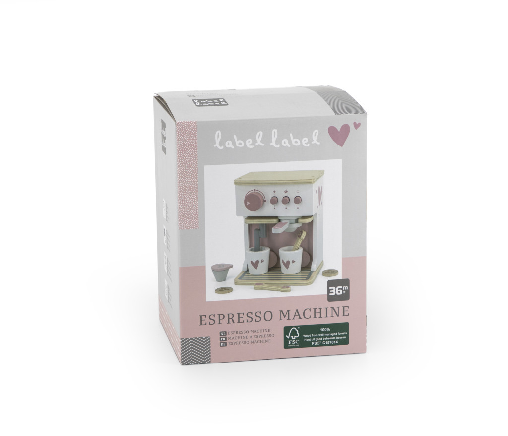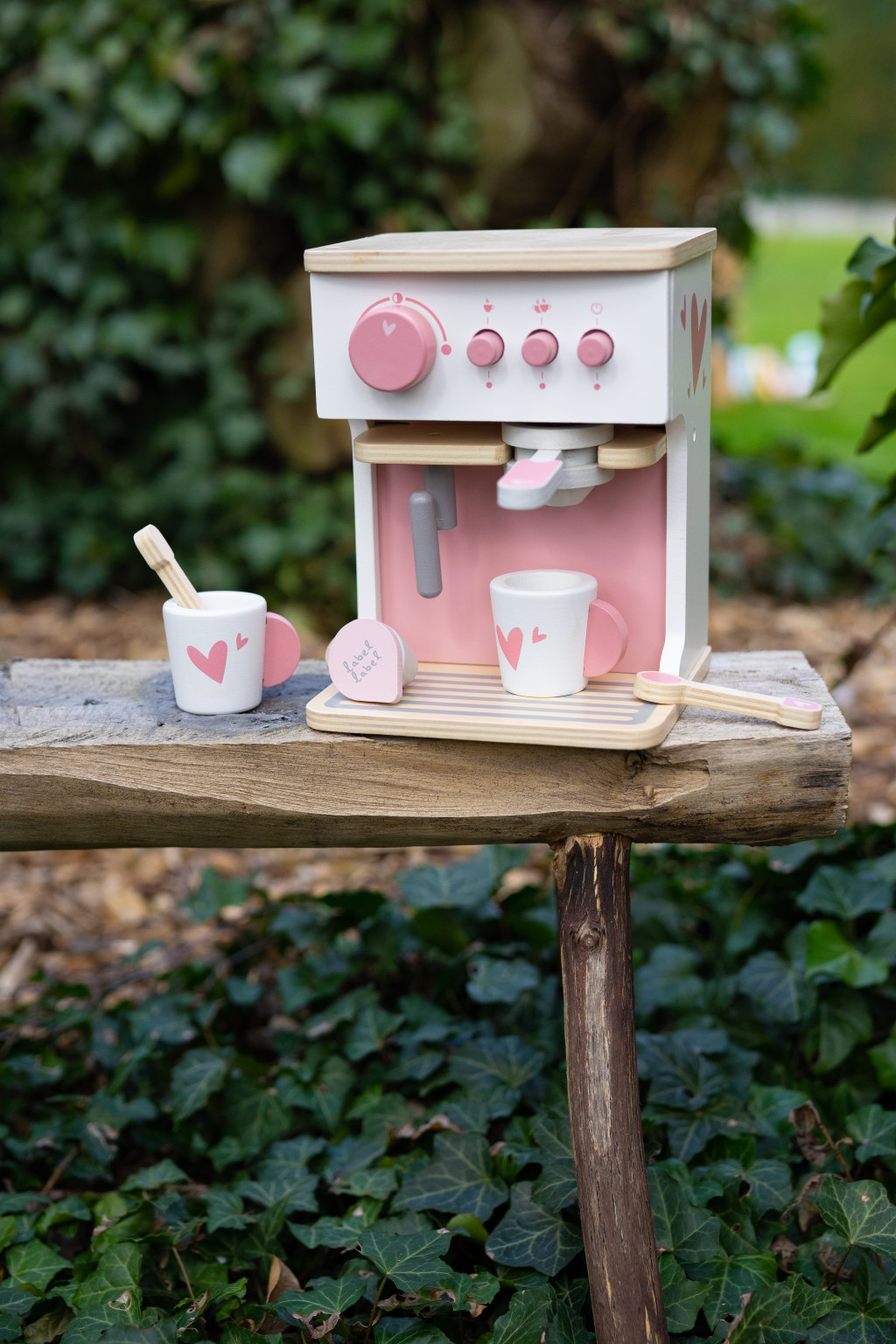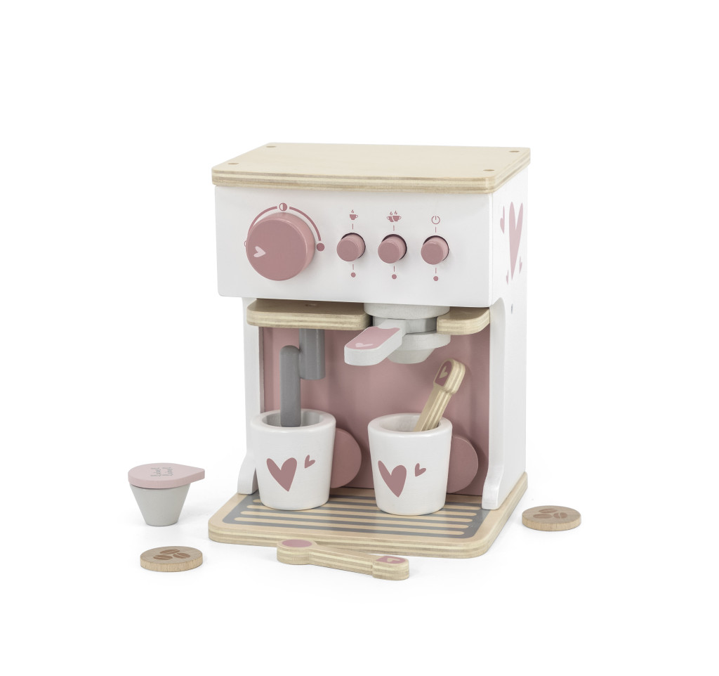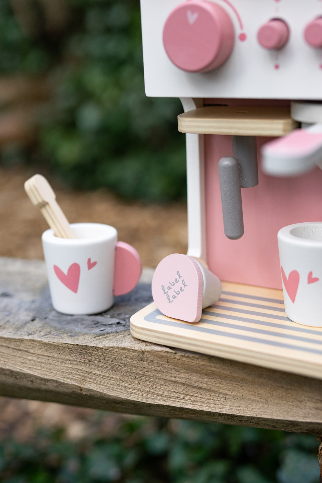 Label-Label kávéfőző szett kiegészítőkkel, rózsaszín - Fa játék szerepjáték