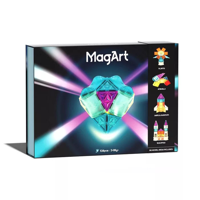 A MagArt 110 darabos mágneses építőkészlet ideális választás azoknak a gyerekeknek, akik már nagyobb és részletesebb építményeket szeretnének létrehozni. A különböző formájú és színű elemek mágnesesen kapcsolódnak egymáshoz, így az építés egyszerű és élvezetes.