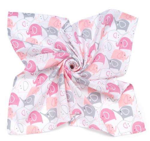 MTT Nagy textil pelenka (120x120) - Fehér alapon rózsaszín elefántok