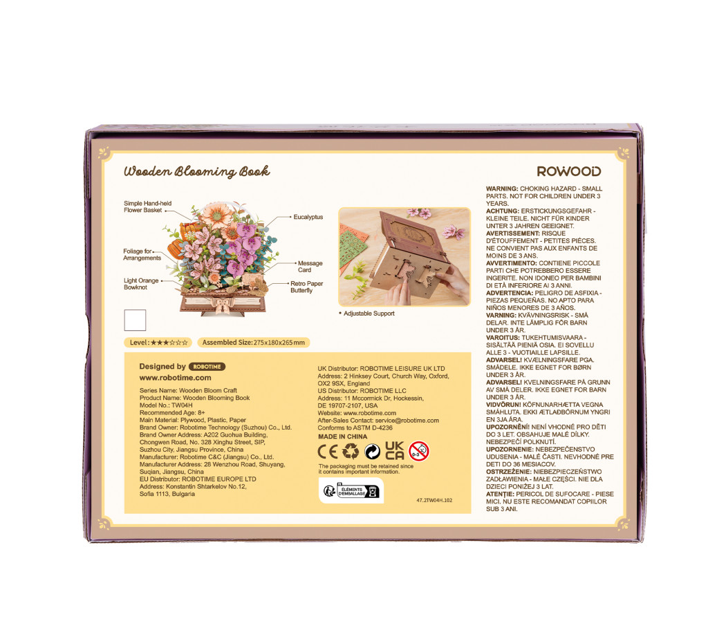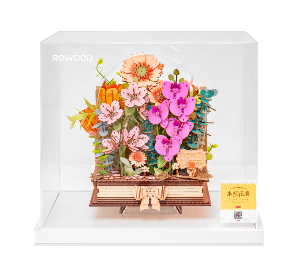 A Virágzó könyvem egy különleges DIY 3D fa puzzle, ahol az irodalom hangulata és a természet szépsége találkozik. A keményfedeles könyvet idéző szerkezet lapjai közül egy gazdag virágcsokor bontakozik ki, mintha egy történet kelne életre a lapok között.